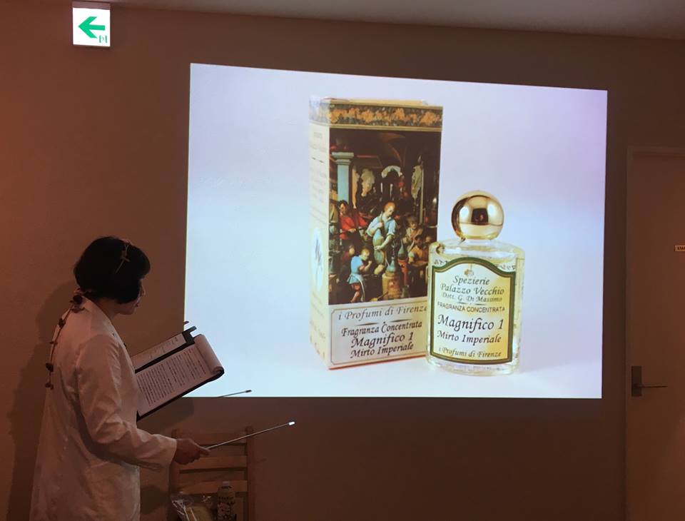 イタリアの薬局・修道院がらみのブランドに多い、ある日洪水や書庫整理などで偶然中世の処方が見つかり、それをもとにブランド化したパターン。当時のレシピを復刻…とはいうものの、確かに田舎で見かける古い看板のように時が止まったような香りもあれば「これはないだろ~」と苦笑しきりの、古代ローマを髣髴する香りもあったりして、特に後半は、あまりの「古代ローマ」な香りに場内騒然。