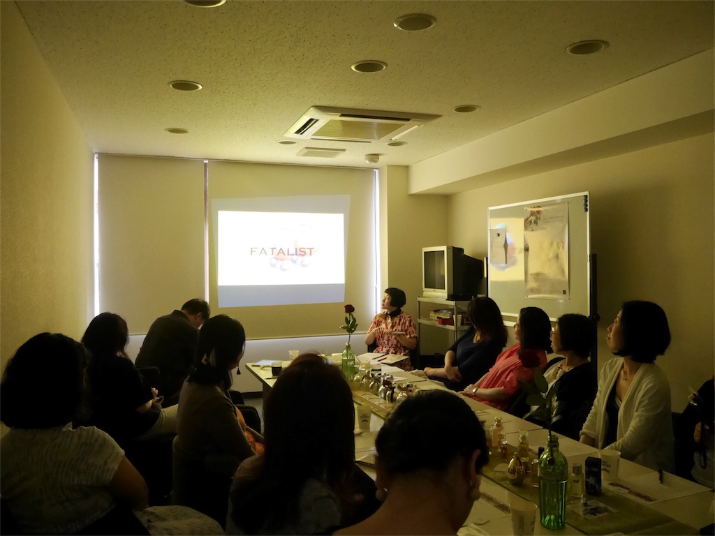 紹介した香りのボトルを実際に手に取れることは、リアルイベントならではのお楽しみですが、テーブルの前部にはピュアディスタンスのボトルディスプレィ及び先日のMeet LPT&Puredistanceで初登場のティスティンググラスボードが、2台(6本分)から3台(9本分)へと更に進化して登場。後部にはCabaret LPTのテーマに即し、21世紀の粉物が勢ぞろい。名前だけ聞いていた事のあるボトルを実際お手に取ったり、ライブショー中お配りしたムエットで気になる香りを直接肌に乗せて香り比べをするなど、存分に体感していただきました。