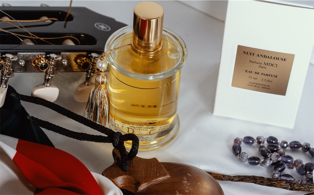 テーマは「アンダルシアの夜」。スペインのアンダルシア地方といえば、かつてイスラム教の支配下にあり、中世のレコンキスタでキリスト教を取り戻した後もアラベスク文化が色濃く残る地域です。建物のタイルとか綺麗ですよね!その「夜」なので、なんともしっとり、エキゾチック…でゴリゴリのオリエンタルになるかと思いきや、やっぱりここでもピーチシプレが主軸でトロピカル感があって、日本の和クチナシとは全くの別物です。なんか、日本のクチナシってヨーロッパだと育たないって聞いたので、普通調香師さんが作るガーデニアって、どうしてもチュベローズ寄りのトロピカルむんむん系になっちゃいますよね。伝統的な中東の香りで、オレンジとサンダルウッドを合わせたアル=アンダルースも引き立て役に入っています。