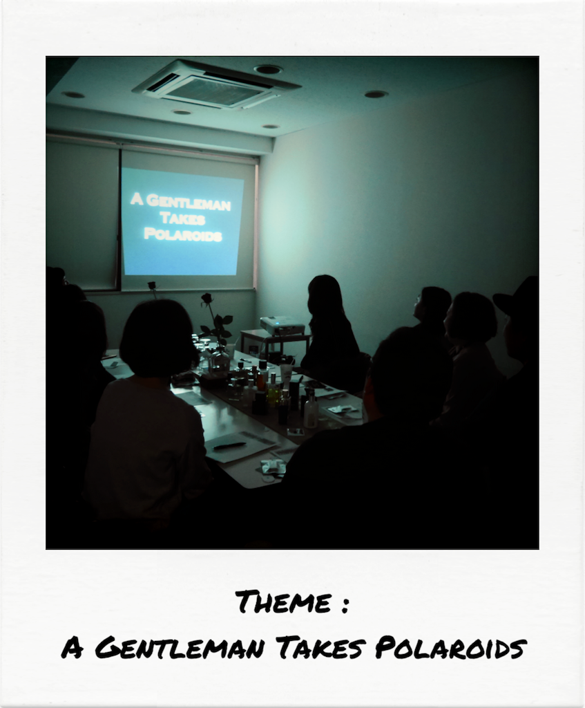 最大の関所、別室の受付を通過して無事会場に入ればテーブルの上にはおびただしい数の香水と、2本の赤いバラだけ。おかしなオープニングビデオと異形のBGM、そして90分間香りについて一人の人間が話しまくるというハードコアイベント、キャバレーLPT。おしゃれな演出はほぼ何もない、いわば香りのブートキャンプです。今回のテーマはずばり「ジェントルマンコーナー」。ついにLPTの人気シリーズがリアルイベントとして登場しました。