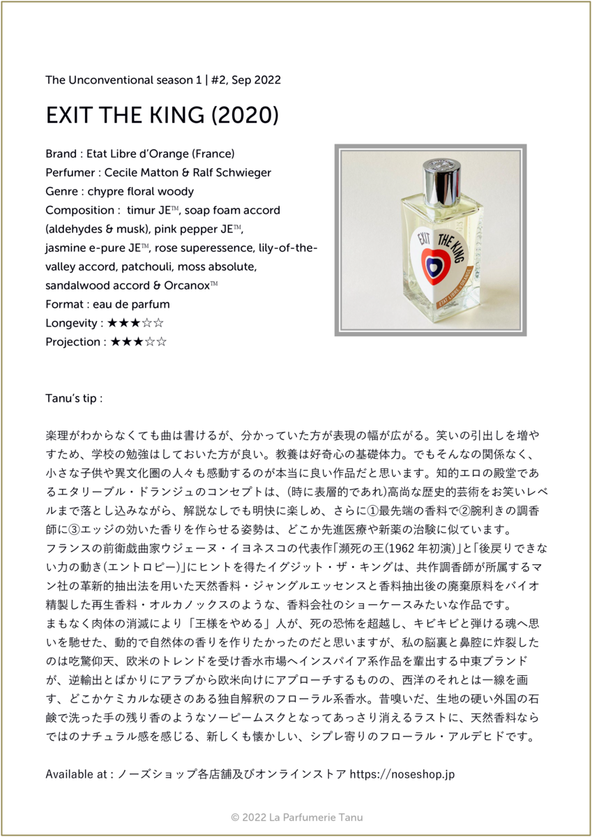 2023-02-09 Exit the King (2020) 23. The Unconventional 03. Modern Classic Chypre Floral Woody イグジット・ザ・キング EDP 100ml
