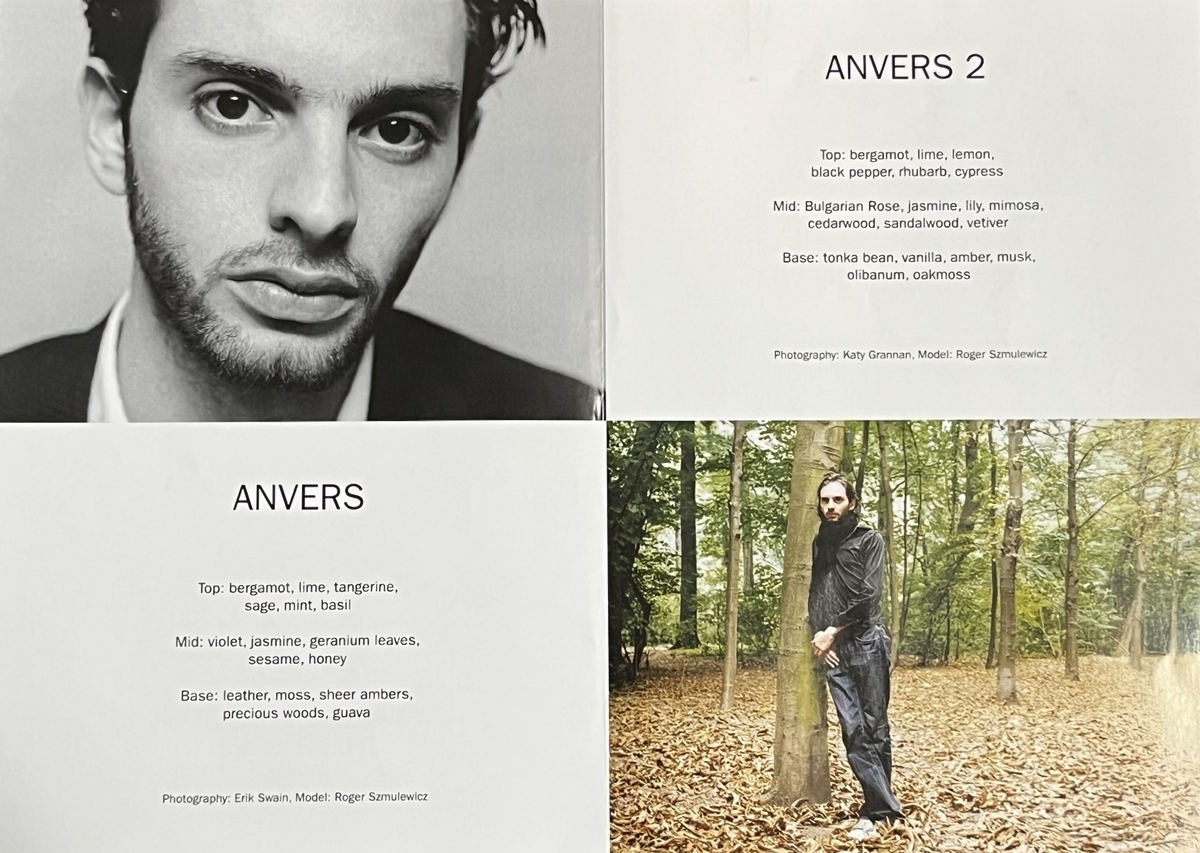 ウルリッヒ 彼は調香師ではなく、若いのによくここまで素晴らしい作品を所蔵していると感服する程の審美眼を持ったベルギーのギャラリーオーナーです。ブランド初の作品、アンヴェールを制作する際、メンズ作品を作りたかったのですが、いかにもアメリカっぽい、マッチョな感じではなく、知的で繊細な青年像みたいな写真が欲しかったのですが、ロジャーが最適だと思いました。2作目、アンヴェール2でもロジャーが登場しますが、引きで撮ってウッディな雰囲気を重ねた写真を、ケイティ・グラナンに依頼しました。彼女はこんな静的な写真を撮る一方で、ジャスティン・ビーバーも撮っているんですよ(笑)処女作、2作目と連投で、これぞ「ウルリッヒ・ラング・メン」という感じですよね。